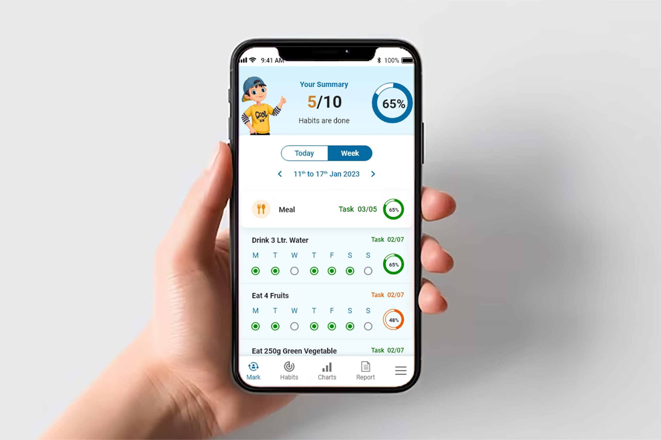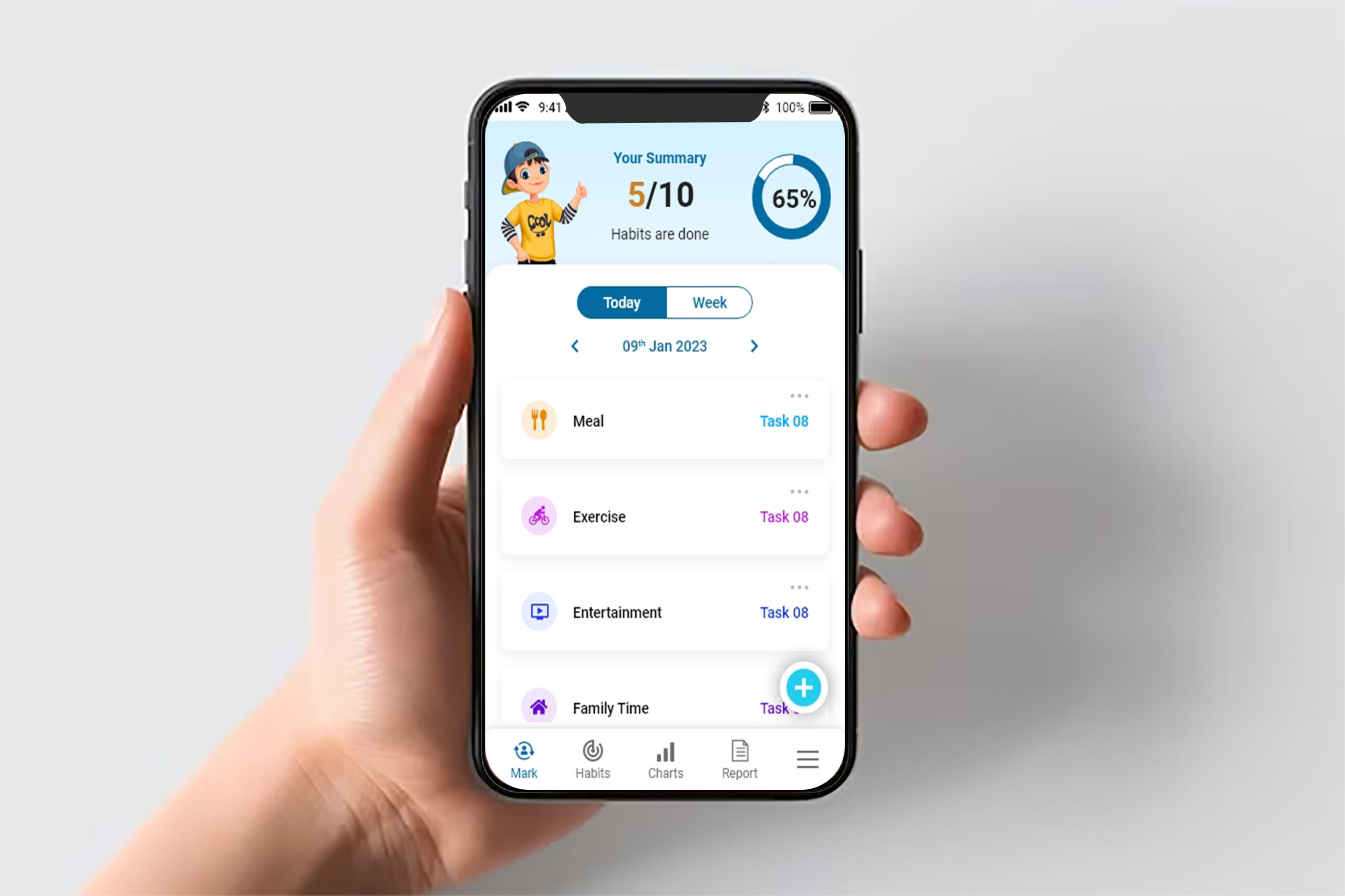 App typically allows you to create a list of habits you want to track. You can mark each habit as completed or missed daily. Moreover, the app provides visual representations in Reports and data to help you analyze your habits and stay motivated.